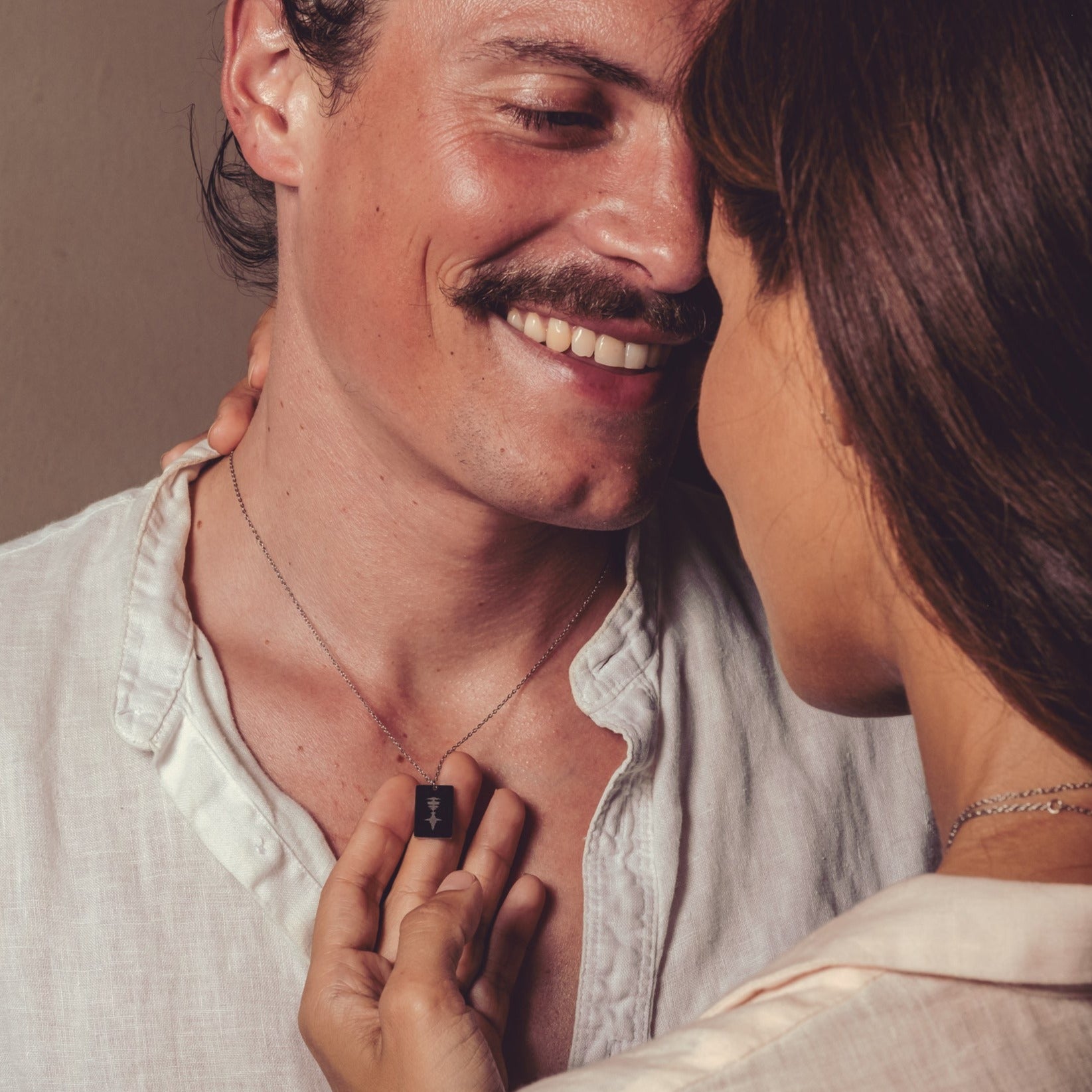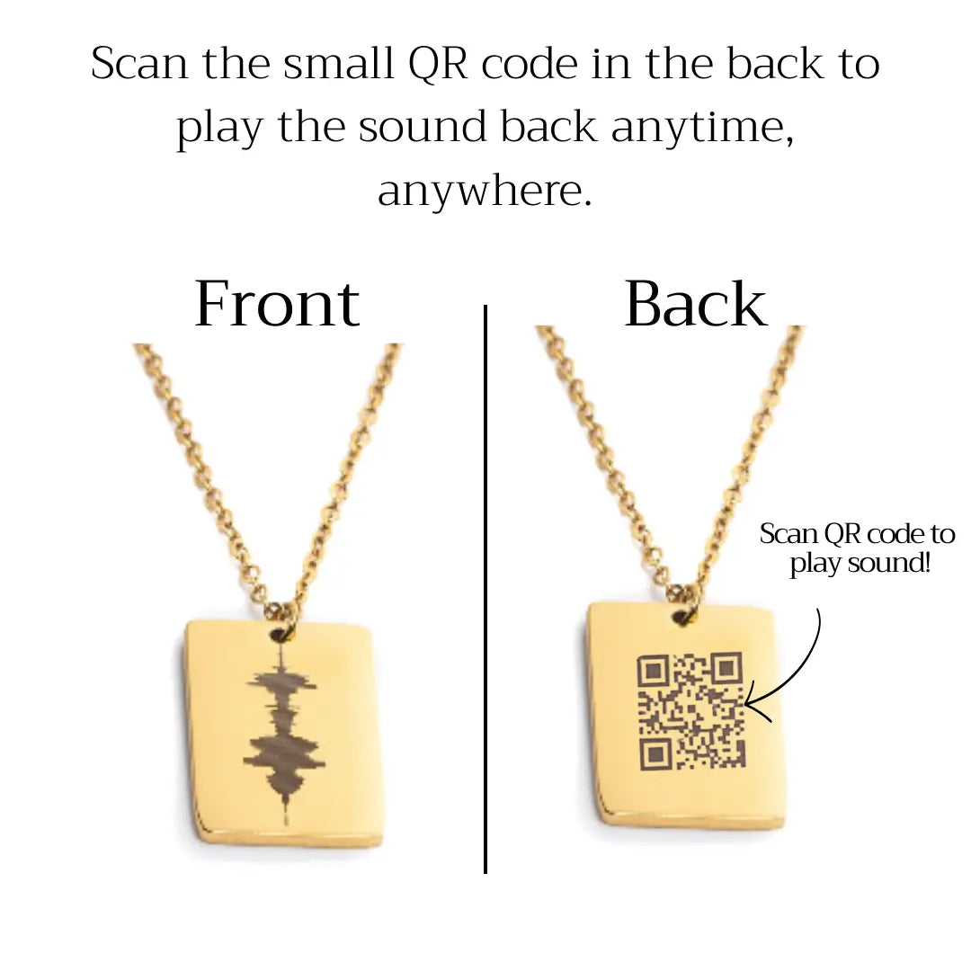 Make this necklace unique by adding the sound wave vibration of your voice to it. You can listen to the secret message whenever you want by scanning the QR code card that you will receive with your package.