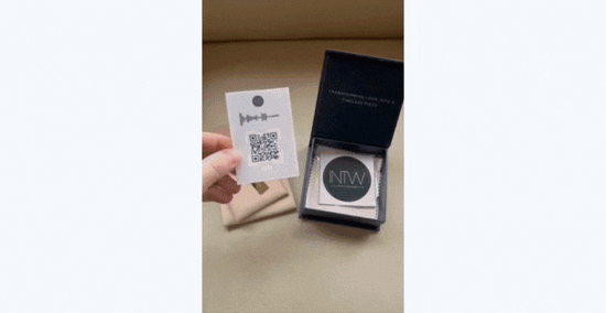 The moment you receive your jewel, you (or your loved one) will be able to play the SoundWave back by scanning a special QR code card that comes with your box.